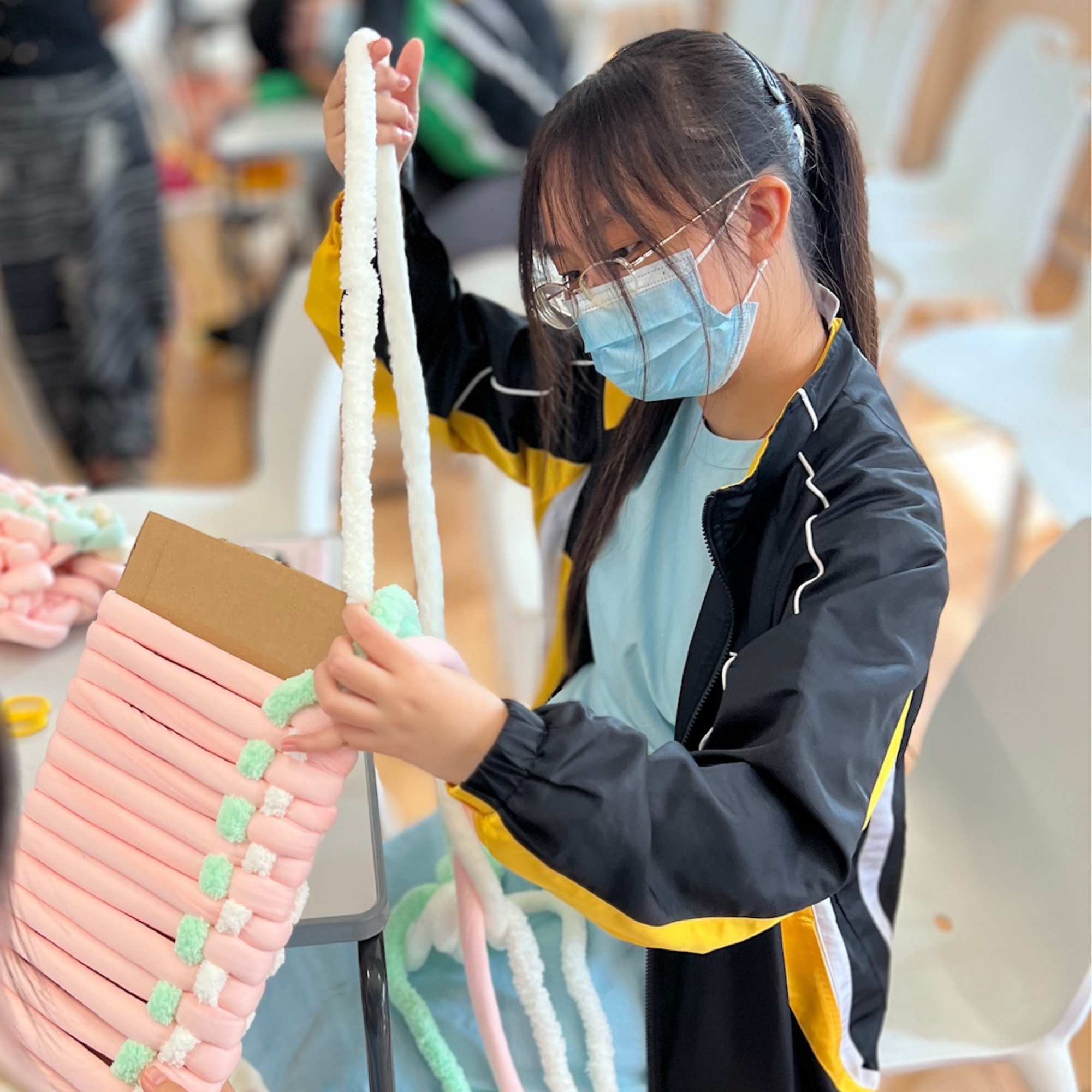 活動中,學生們以紗線為工具,把學校裡的凳子裝扮得五顏六色,編織出不同的形態與情感。每張櫈都充滿創作者的故事...