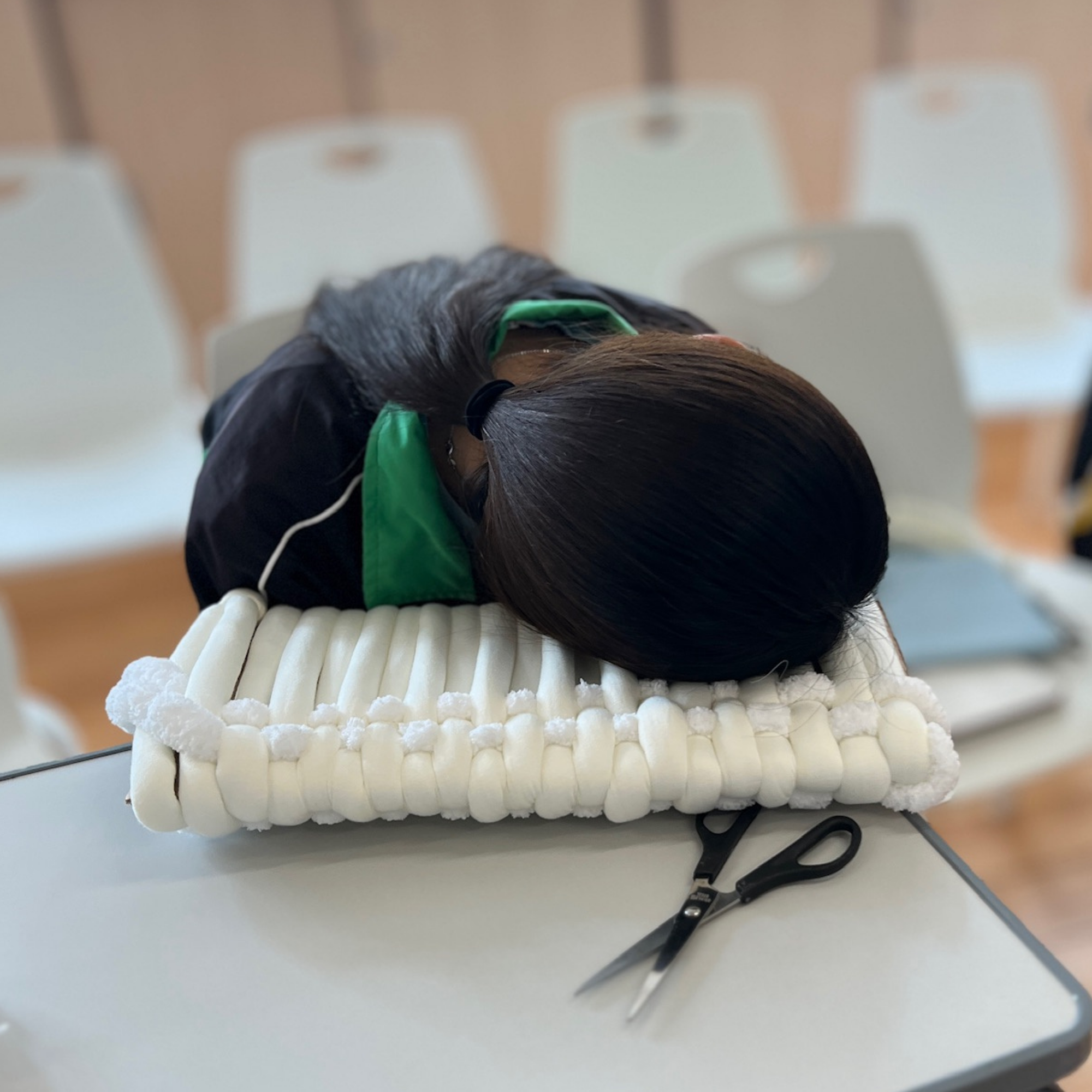 懷裡的抱枕被蹭得暖烘烘的,只要把臉埋進這團柔軟裡,脊椎立刻自動切換成「貓咪捲」模式。下巴陷進雲朵般的觸感中,尖銳的凳角好像正被抱枕的柔軟一點點融化,壓力也隨之消散。