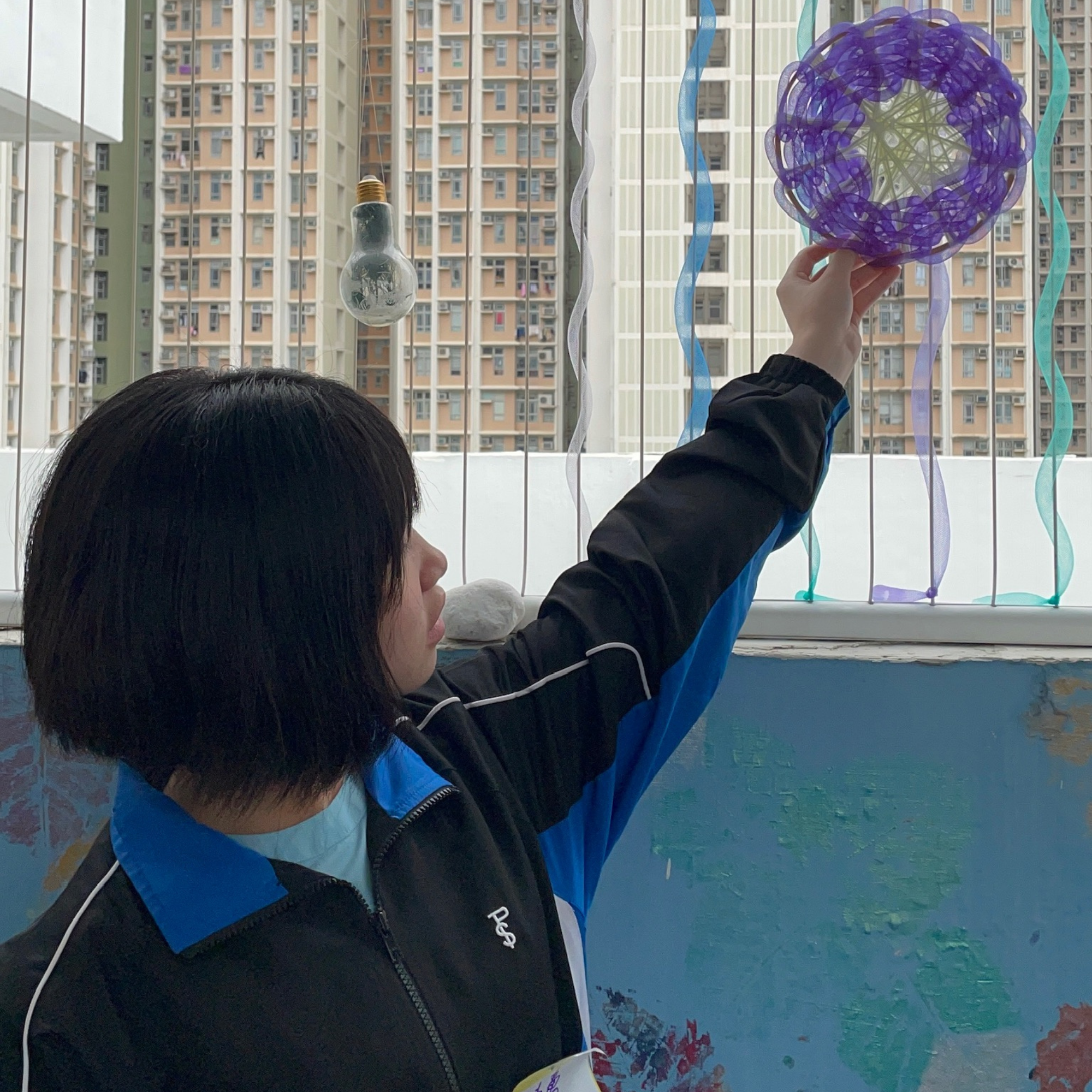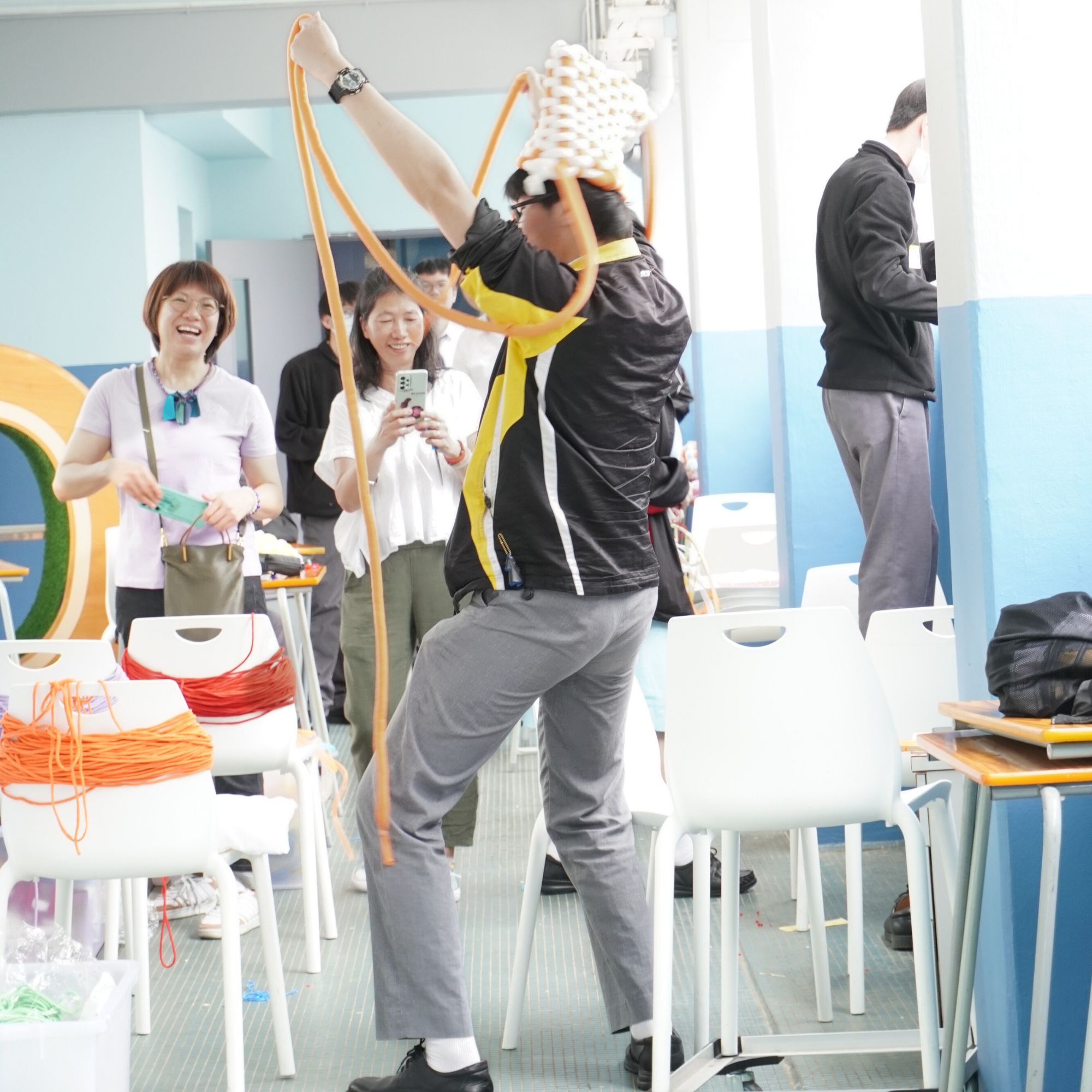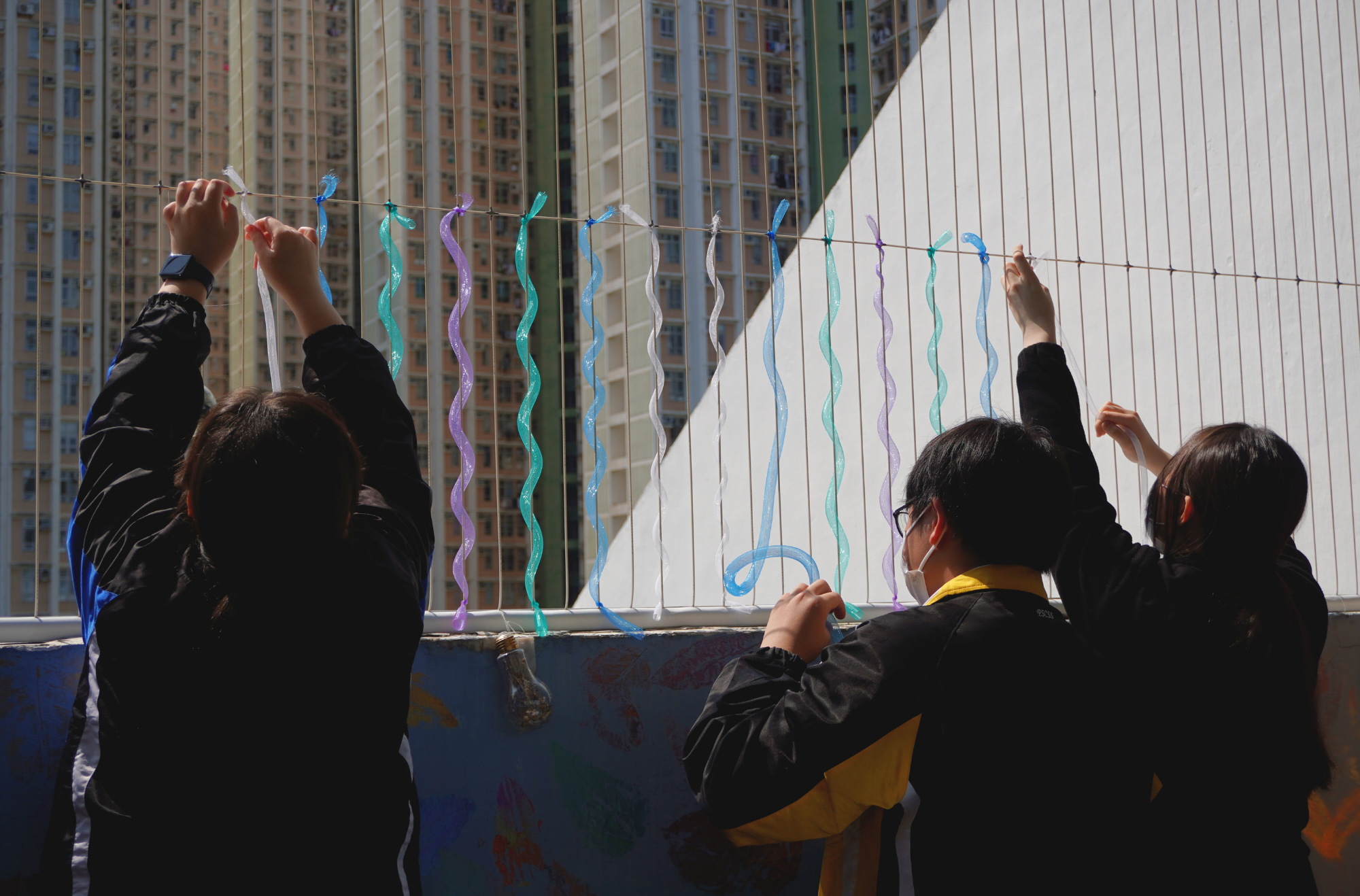 你是否曾留意過,生活中的「鬆」與「緊」如何悄悄影響著我們?一張凳、一個咕臣、一扇窗,這些看似普通的物件,其實都能牽動情緒的放鬆與緊張。在天主教培聖中學的校園裡,一群中五學生與藝術家由美攜手合作,透過紗鷗麗編織的創作形式,佈置校園空間,展開了一場情緒與空間的創作旅程——「鬆緊之間」