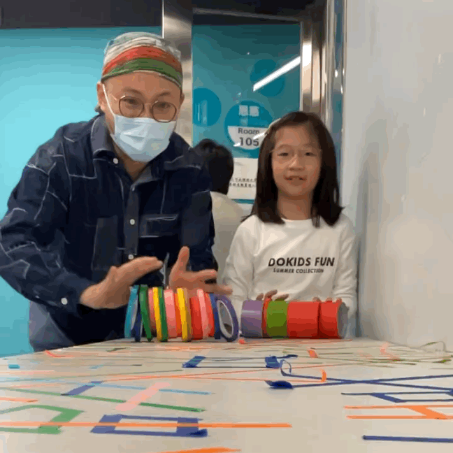 怎樣玩縮時攝影呢?參加者在桌面上用色彩繽紛的膠紙創拼成圖畫。我們將手機穩定地安放在腳架上,對準桌面進行拍攝,並開啟縮時攝影模式,記錄整個創作過程。完成後,影片會自動壓縮成幾秒鐘,呈現膠紙圖案快速完成的效果,讓人彷彿看見時間在飛速流逝。