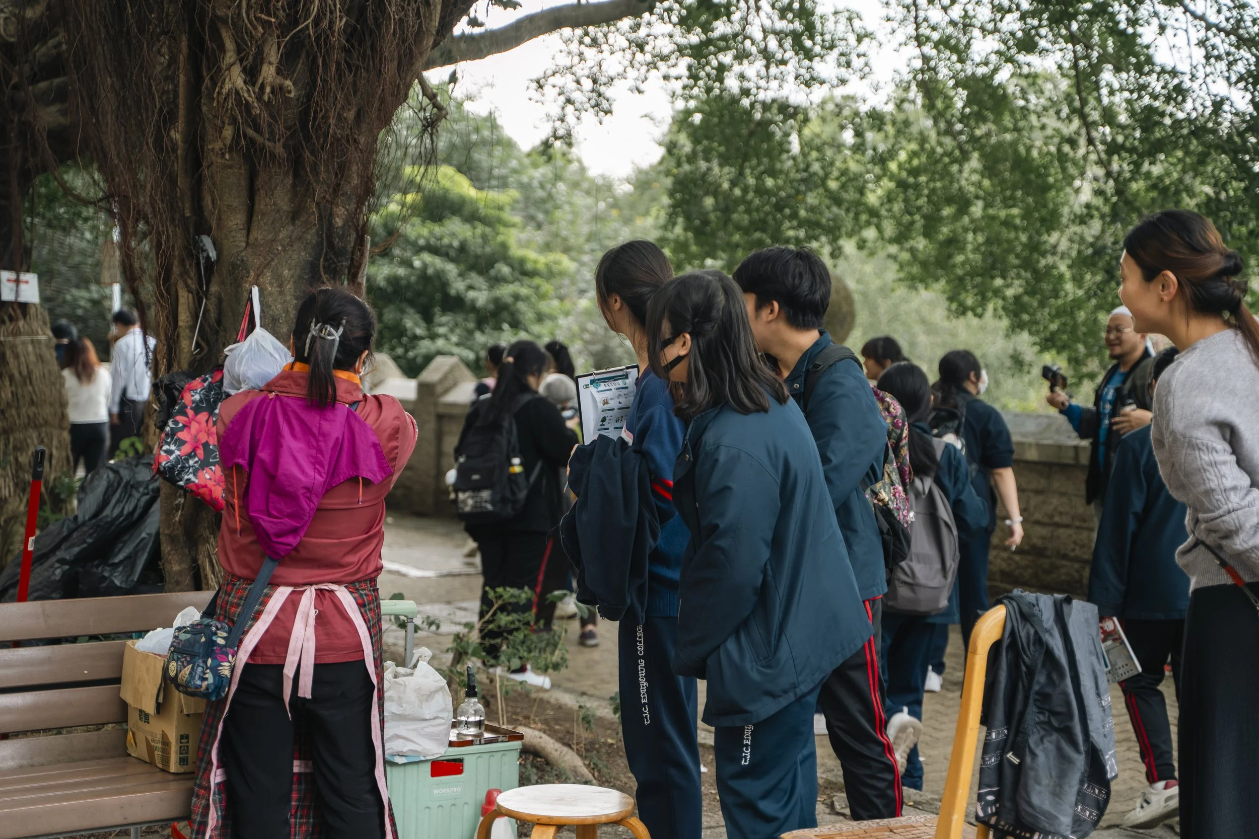 「聽說以前的『臭河』真的很臭,現在完全不一樣了呢!」一位年輕的學生好奇地說。 「是啊,這裡的黃昏很美的!」一位長者笑著回答,眼神裡充滿了對這片土地的喜愛。 「前面還有街坊會幫人剪頭髮,好特別!」另一位學生驚訝地分享他的新發現。